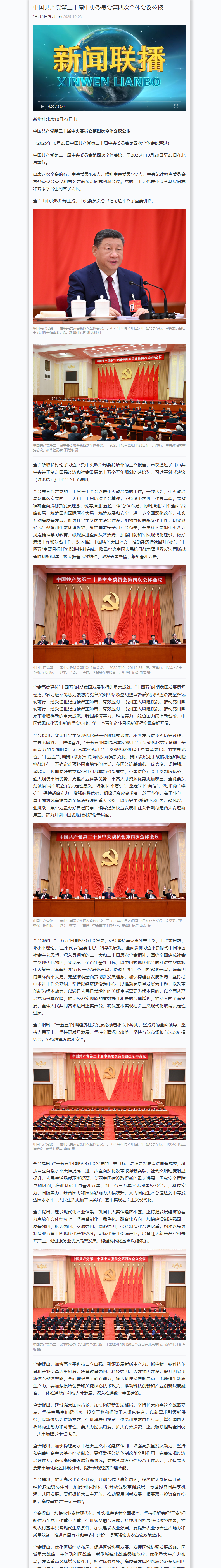 中國(guó)共產(chǎn)黨第二十屆中央委員會(huì)第四次全體會(huì)議公報(bào)